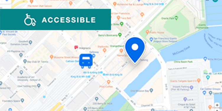 You'll find us just north of our Mission Bay campus. Several public transit options, including Caltrain and multiple Muni lines, will bring you within steps of our clinics, and paid parking is available in the China Basin parking garage at 920 Third St. The area has plenty of options for food, coffee and shopping.