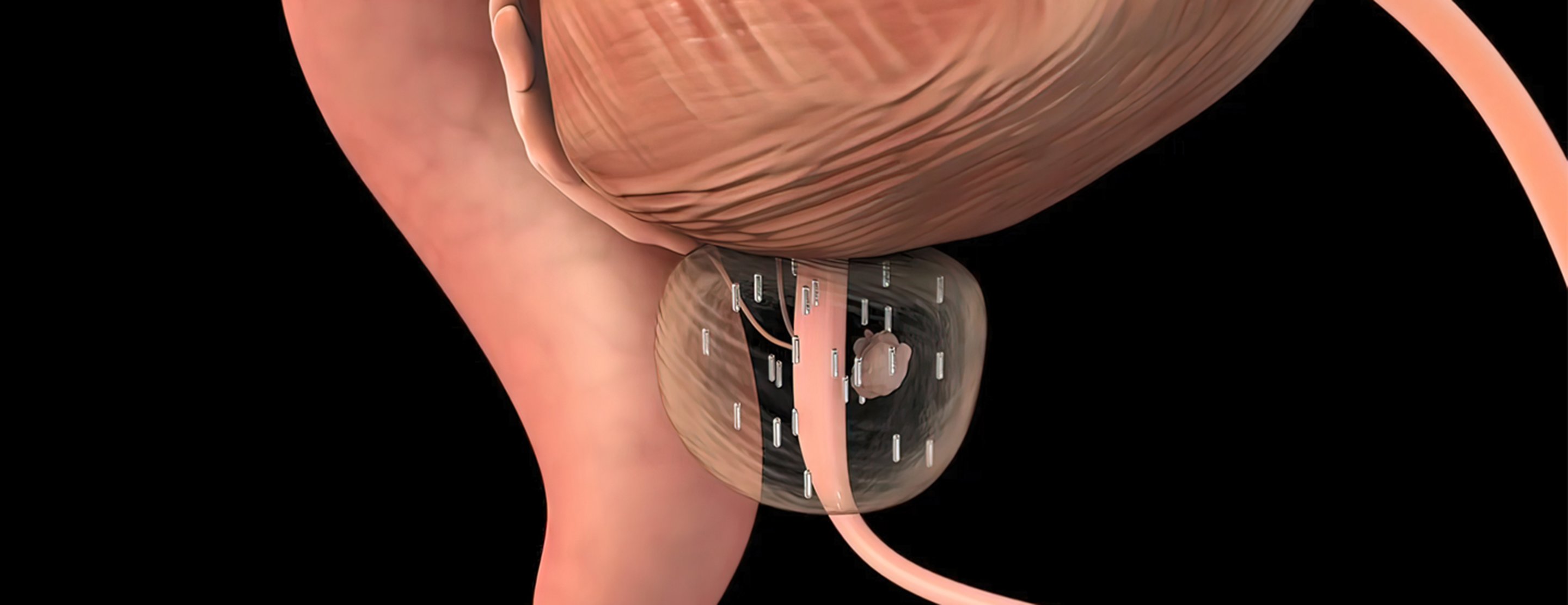 When the seeds are placed, your radiation oncologist may offer you the option of also having a rectal hydrogel spacer placed. The spacer's purpose is to create distance between the prostate and the rectum, buffering the rectum from radiation exposure. Placement is performed under local anesthetic with TRUS-guided needle insertion through the perineum. Hydrogel is injected into the space between the rectum and the prostate as a liquid that solidifies over a few minutes. The hydrogel spacer remains intact for approximately three months and then the material is gradually absorbed by the body and excreted in urine.